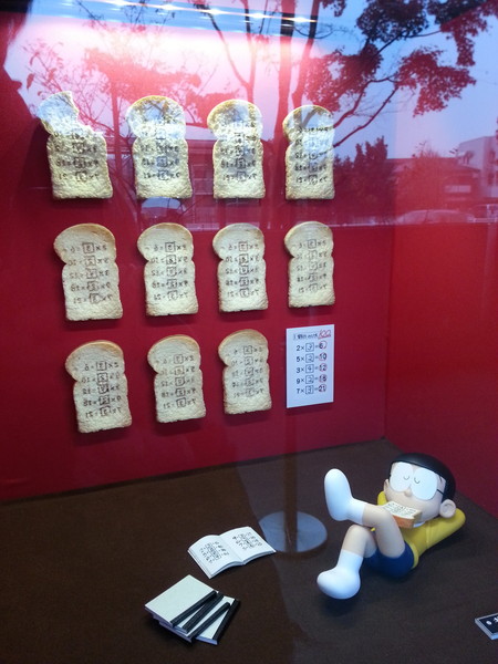 ショーケースの他に、よく見ると外壁自体にもドラえもんが。