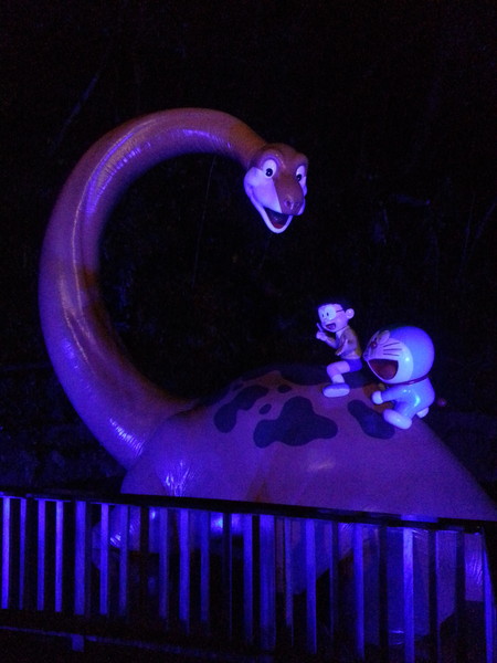奥には「のび太の恐竜」のワンシーンを再現した展示も。