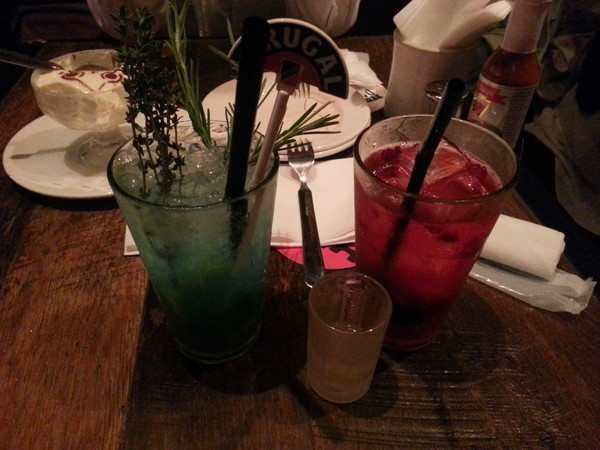 一通りモンハン展を見終わったあと、別フロアにある飲食店がモンハンとコラボしていると聞いて立ち寄ってみました。写真はアイルーのティラミスとレイアハーブモヒート、鬼人薬ドリンク。
